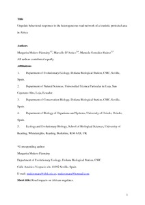 Ungulate behavioral responses to the heterogeneous road-network of a touristic protected area in Africa.