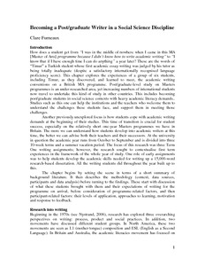 Furneaux, C. (2015) Becoming a post/graduate writer in a social science discipline. In: Badenhorst, C. and Guerin, C. (eds.) Research literacies and writing pedagogies for Masters and doctoral writers. Studies in Writing Series, 31. Brill, Leiden. Netherlands, pp. 166-183. ISBN 9789004304338 doi: 10.1163/9789004304338