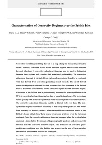 Convection-permitting modelling has led to a step change in forecasting convective events. However, convection occurs within different regimes which exhibit different forecast behaviour. A convective adjustment timescale can be used to distinguish between these regimes and examine their associated predictability. The convective adjustment timescale is calculated from radiosonde ascents and found to be consistent with that derived from convection-permitting model forecasts. The model-derived convective adjustment timescale is then examined for three summers in the British Isles to determine characteristics of the convective regimes for this maritime region. Convection in the British Isles is predominantly in convective quasi-equilibrium with 85%of convection having a timescale less than or equal to three hours. This percentage varies spatially with more non-equilibriumevents occurring in the south and southwest. The convective adjustment timescale exhibits a diurnal cycle over land. The nonequilibrium regime occurs more frequently at mid-range wind speeds and with winds from southerly to westerly sectors. Most non-equilibrium convective events in the British Isles are initiated near large coastal orographic gradients or on the European continent. Thus, the convective adjustment timescale is greatest when the location being examined is immediately downstream of large orographic gradients and decreases with distance from the convective initiation region. The dominance of convective quasiequilibrium conditions over the British Isles argues for the use of large-member ensembles in probabilistic forecasts for this region.
