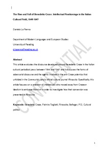 The rise and fall of Benedetto Croce: intellectual positionings in the Italian cultural field 1944-1947.
