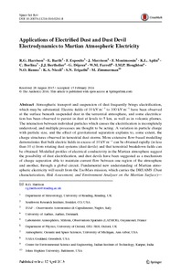 Applications of electrified dust and dust devil electrodynamics to Martian atmospheric electricity.