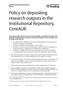 - Policy on depositing research outputs in the institutional repository, CentAUR. (deposited 18 Feb 2016 14:04) [Currently Displayed]