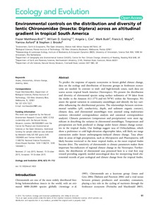 Environmental controls on the distribution and diversity of lentic Chironomidae (Insecta: Diptera) across an altitudinal gradient in tropical South America.