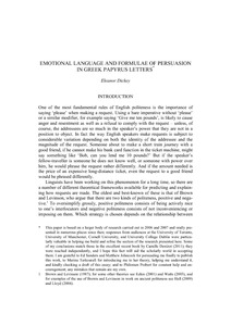 Dickey, E. ORCID: https://orcid.org/0000-0002-4272-4803 (2016) Emotional language and formulae of persuasion in Greek papyrus letters. In: Sanders, E. and Johncock, M. (eds.) Emotion and Persuasion in Classical Antiquity. Franz Steiner Verlag, Stuttgart, pp. 237-262. ISBN 9783515113618