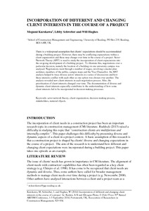 There is a widespread assumption that clients’ expectations should be accommodated during a building project. However, there may be conflicting expectations within a client organization and these may change over time in the course of a project. Actor-Network Theory (ANT) is used to study the incorporation of client expectations into the on-going development of a building project. To illustrate this, negotiations over a particular decision, namely the location of a building on one university campus was analysed. Negotiations went through a number of stages, involving a master plan architect, members of the public, campus maps and the Vice Chancellor. An ANT analysis helped to trace diverse actors' interests in a series of discussions and how these interests conflict with each other as one option was chosen over another. The analysis revealed new client interests in each negotiation process. Also, the prioritisation of client interests changed over time. The documentation of diverse and dynamic client interests especially contributes to the understanding of how some client interests fail to be incorporated in decision-making processes