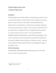 Stratton-Lake, P. (2017) The buck passing account of value: assessing the negative thesis. In: Kirchin, S. (ed.) Reading Parfit: On On What Matters. Routledge, London, pp. 82-95. ISBN 0415529506