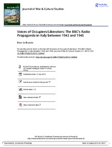 Lo Biundo, E. (2016) Voices of Occupiers/Liberators: the BBC's radio propaganda in Italy between 1942 and 1945. Journal of War & Culture Studies, 9 (1). pp. 60-73. ISSN 1752-6272 doi: 10.1080/17526272.2015.1100442