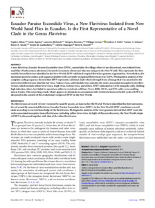 Alkan, C., Zapata, S., Bichaud, L., Moureau, G., Lemey, P., Firth, A. E., Gritsun, T. S., Gould, E. A., de Lamballerie, X., Depaquit, J. and Charrel, R. N. (2015) Ecuador Paraiso Escondido virus, a new flavivirus isolated from New World sand flies in Ecuador, is the first representative of a novel clade in the genus flavivirus. Journal of Virology, 89 (23). pp. 11773-11785. ISSN 0022-538X doi: 10.1128/jvi.01543-15