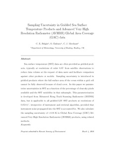 Bulgin, C. E. ORCID: https://orcid.org/0000-0003-4368-7386, Embury, O. ORCID: https://orcid.org/0000-0002-1661-7828 and Merchant, C. J. ORCID: https://orcid.org/0000-0003-4687-9850 (2016) Sampling uncertainty in gridded sea surface temperature products and Advanced Very High Resolution Radiometer (AVHRR) Global Area Coverage (GAC) data. Remote Sensing of Environment, 117. pp. 287-294. ISSN 0034-4257 doi: 10.1016/j.rse.2016.02.021
