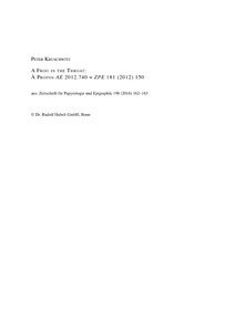 Kruschwitz, P. (2016) A frog in the throat: à propos AE 2012.740 = ZPE 181 (2012) 150. Zeitschrift für Papyrologie und Epigraphik. pp. 162-163. ISSN 0084-5388