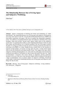 Foye, C. (2017) The relationship between size of living space and subjective well-being. Journal of Happiness Studies, 18 (2). pp. 427-461. ISSN 1573-7780 doi: 10.1007/s10902-016-9732-2