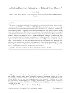 Zeng, Y. (2016) Institutional investors: arbitrageurs or rational trend chasers? International Review of Financial Analysis, 45. pp. 240-262. ISSN 1057-5219 doi: 10.1016/j.irfa.2016.03.006
