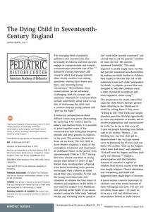 Newton, H. (2015) The dying child in seventeenth-century England. Pediatrics, 136 (2). pp. 218-220. ISSN 1098-4275 doi: 10.1542/peds.2015-0971