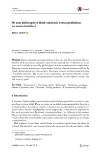 Andow, J. (2017) Do non-philosophers think epistemic consequentialism is counterintuitive? Synthese, 194 (7). pp. 2631-2643. ISSN 1573-0964 doi: 10.1007/s11229-016-1071-7