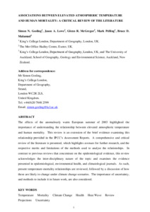 Gosling, S. N., Lowe, J. A., McGregor, G. R., Pelling, M. and Malamud, B. D. (2009) Associations between elevated atmospheric temperature and human mortality: a critical review of the literature. Climatic Change, 92 (3-4). pp. 299-341. ISSN 0165-0009 doi: 10.1007/s10584-008-9441-x