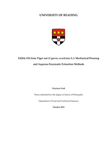 Ezeh, O. (2016) Edible oil from Tiger nut (Cyperus esculentus L.): mechanical pressing and aqueous enzymatic extraction methods. PhD thesis, University of Reading.