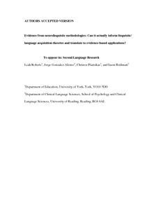 Roberts, L., Gonzalez Alonso, J., Pliatsikas, C.