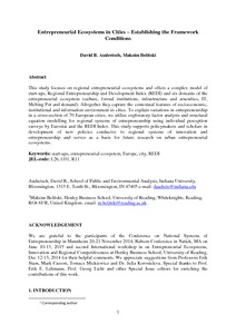Audretsch, D. B. and Belitski, M. (2017) Entrepreneurial ecosystems in cities: establishing the framework conditions. Journal of Technology Transfer, 42 (5). pp. 1030-1051. ISSN 1573-7047 doi: 10.1007/s10961-016-9473-8