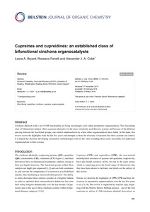 Bryant, L. A., Fanelli, R. and Cobb, A. J. A. (2016) Cupreines and cupreidines: an established class of bifunctional cinchona organocatalysts. Beilstein Journal of Organic Chemistry, 12. pp. 429-443. ISSN 1860-5397 doi: 10.3762/bjoc.12.46