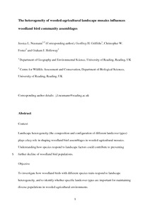 [thumbnail of Neumann et al 2016 The heterogeneity of wooded-agricultural landscape mosaics influences woodland bird community assemblages.pdf]