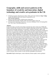 Geography, skills and careers patterns at the boundary of creativity & innovation: digital technology and creative arts graduates in the UK.
