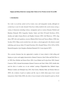 Della Giusta, M. ORCID: https://orcid.org/0000-0003-3959-4451, Di Tommaso, M. L. and Jewell, S. ORCID: https://orcid.org/0000-0002-4413-6618 (2017) Stigma and risky behaviors among male clients of sex workers in the UK in 2001. Feminist Economics, 23 (3). pp. 23-48. ISSN 1466-4372 doi: 10.1080/13545701.2016.1203453