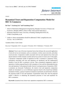 Tian, B., Liu, K. and Chen, Y. (2015) Dynamical trust and reputation computation model for B2C E-Commerce. Future Internet, 7 (4). pp. 405-428. ISSN 1999-5903 doi: 10.3390/fi7040405
