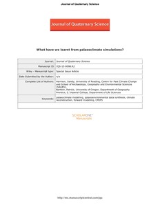 Harrison, S. P. ORCID: https://orcid.org/0000-0001-5687-1903, Bartlein, P. J. and Prentice, I. C. (2016) What have we learnt from palaeoclimate simulations? Journal of Quaternary Science, 314 (4). pp. 363-385. ISSN 0267-8179 doi: 10.1002/jqs.2842