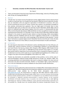 ‘Thunder days’ are simple records of thunderstorm activity, logging whether a human observer heard thunder on a particular day or not. Despite their low dynamic range and inherent subjectivity, thunder days are invaluable as the only long-term observations of thunderstorm occurrence, with some records stretching back into the nineteenth century. Thunder days, however, are potentially susceptible to false positives, particularly from explosions. Thus one might expect UK thunder days to show anomalously high counts on New Year's Eve and the days around 5 November, Bonfire Night, both of which are celebrated with large firework displays across the country. It is demonstrated that UK Met Office records of thunder days between 1980 and 2010 do not show any significant increase in thunder reporting around 5 November or 31 December. In fact, the days around 5 November exhibit the largest reduction in the amount of reported thunder relative to annual climatology. While meteorological variability cannot be completely ruled out, this result is suggestive of observer bias; it is speculated that human observers, armed with a priori knowledge of the likelihood of false positives, ‘second guess’ themselves to a greater degree around 5 November than the rest of the year. In fact, the data suggest they should trust in their ability to correctly discriminate between thunder and fireworks.