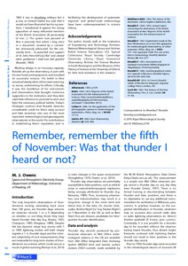 Owens, M. J. ORCID: https://orcid.org/0000-0003-2061-2453 (2016) Remember, remember the fifth of November: was that thunder I heard or not? Weather, 71 (6). pp. 134-137. ISSN 0043-1656 doi: 10.1002/wea.2725