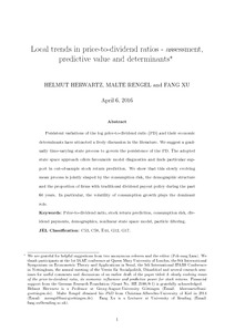 Herwartz, H., Rengel, M. and Xu, F. (2016) Local trends in price-to-dividend ratios - assessment, predictive value and determinants. Journal of Money, Credit and Banking, 48 (8). pp. 1655-1690. ISSN 1538-4616 doi: 10.1111/jmcb.12370