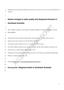 Seasonal changes in water quality and Sargassum biomass in southwest Australia.