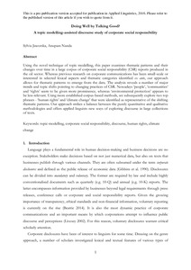Jaworska, S. ORCID: https://orcid.org/0000-0001-7465-2245 and Nanda, A. (2018) Doing well by talking good? A topic modelling-assisted discourse study of corporate social responsibility. Applied Linguistics, 39 (3). pp. 373-399. ISSN 1477-450X doi: 10.1093/applin/amw014