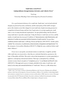 Long, T. (2017) Small states, great power? Gaining influence through intrinsic, derivative, and collective power. International Studies Review, 19 (2). pp. 185-205. ISSN 1468-2486 doi: 10.1093/isr/viw040