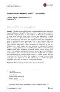 This paper represents a first attempt to employ a macroeconomic approach to explain the high and varying IPO underpricing within a single emerging market. We examine the empirical impact of trade openness on the short-run underpricing of initial public offerings (IPOs) using city-level data. Particularly, we argue that urban economic openness (UEO) has a significant impact on the productivity and on prices of both direct and indirect real estate due to productivity gains of companies in more open areas. This in turn positively affects the firm’s profitability, enhancing the confidence in local real estate markets and future company performance, hence decreasing the uncertainty of the IPO valuation. As a result, issuers have less incentive to underprice IPO shares. We use a sample of Chinese real estate companies IPOs, which offer a suitable laboratory thanks to their strong geographic investment patterns focused locally and a country, with a highly heterogeneous openness across regions. Controlling for traditional firm-‐specific characteristics used for developed markets and Chinese-‐related features (i.e. listing location and state ownership), we find the evidence that companies investing in economically more open areas experience less IPO underpricing. Our results show high explanatory power and are robust to different specifications.