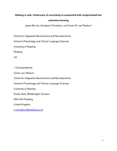 Nothing is safe: intolerance of uncertainty is associated with compromised fear extinction learning.