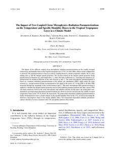 The impact of two coupled cirrus microphysics-radiation parameterizations on the temperature and specific humidity biases in the tropical tropopause layer in a climate model.