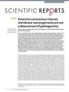 Maier, H. J., Neuman, B. W., Bickerton, E., Keep, S. M., Alrashedi, H., Hall, R. and Britton, P. (2016) Extensive coronavirus-induced membrane rearrangements are not a determinant of pathogenicity. Scientific Reports, 6. 27126. ISSN 2045-2322 doi: 10.1038/srep27126
