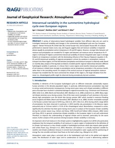 Zveryaev, I. I., Zahn, M. and Allan, R. P. ORCID: https://orcid.org/0000-0003-0264-9447 (2016) Interannual variability in the summertime hydrological cycle over European regions. Journal of Geophysical Research: Atmospheres, 121 (10). pp. 5381-5394. ISSN 2169-8996 doi: 10.1002/2015JD024425