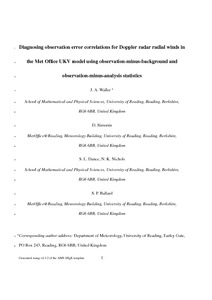 Diagnosing observation error correlations for Doppler radar radial winds in the Met Office UKV model using observation-minus-background and observation-minus-analysis statistics.