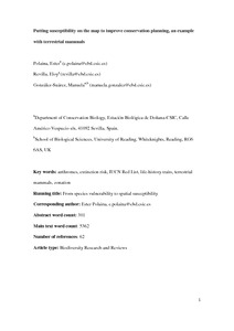 Putting susceptibility on the map to improve conservation planning, an example with terrestrial mammals.