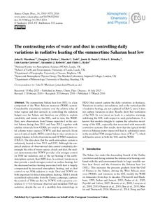 The contrasting roles of water and dust in controlling daily variations in radiative heating of the summertime Saharan heat low.