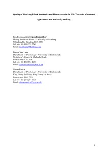 - Edwards, J., D. L. Van Laar, S. Easton, and G. Kinman. 2009. “The work-related quality of life scale for higher education employees.” Quality in Higher Education, 15(3): 207-219. doi: 10.1080/13538320903343057