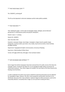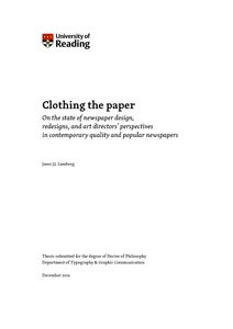Lamberg, J. J. J. (2016) Clothing the paper: on the state of newspaper design, redesigns, and art directors’ perspectives in contemporary quality and popular newspapers. PhD thesis, University of Reading.