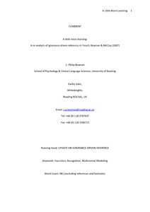 Beaman, C. P. ORCID: https://orcid.org/0000-0001-5124-242X (2017) A little more learning: a re-analysis of ignorance-driven inference in Frosch, Beaman & McCloy (2007). Quarterly Journal of Experimental Psychology, 70 (3). pp. 592-595. ISSN 1747-0218 doi: 10.1080/17470218.2016.1209685