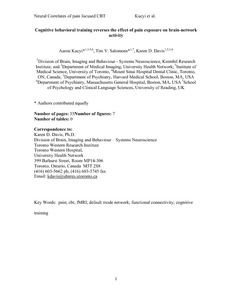 Kucyi, A., Salomons, T. V. and Davis, K. D. (2016) Cognitive behavioral training reverses the effect of pain exposure on brain-network activity. Pain, 157 (9). pp. 1895-1904. ISSN 0304-3959 doi: 10.1097/j.pain.0000000000000592