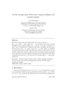 Hilberdink, T. and Tóth, L. (2016) On the average value of the least common multiple of k positive integers. Journal of Number Theory, 169. pp. 327-341. ISSN 0022-314X doi: 10.1016/j.jnt.2016.05.024