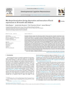 Rayson, H., Bonaiuto, J. J., Ferrari, P. F. and Murray, L. (2016) Mu desynchronization during observation and execution of facial expressions in 30-month-old children. Developmental Cognitive Neuroscience, 19. pp. 279-287. ISSN 1878-9307 doi: 10.1016/j.dcn.2016.05.003