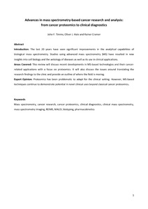 Introduction: The last 20 years have seen significant improvements in the analytical capabilities of biological mass spectrometry. Studies using advanced mass spectrometry (MS) have resulted in new insights into cell biology and the aetiology of diseases as well as its use in clinical applications. Areas Covered: This review will discuss recent developments in MS-based technologies and their cancer-related applications with a focus on proteomics. It will also discuss the issues around translating the research findings to the clinic and provide an outline of where the field is moving. Expert Opinion: Proteomics has been problematic to adapt for the clinical setting. However, MS-based techniques continue to demonstrate potential in novel clinical uses beyond classical cancer proteomics.