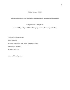 [thumbnail of Recent developments in the treatment of anxiety disorders in children and adolescents_Creswell and Waite_2016.pdf]